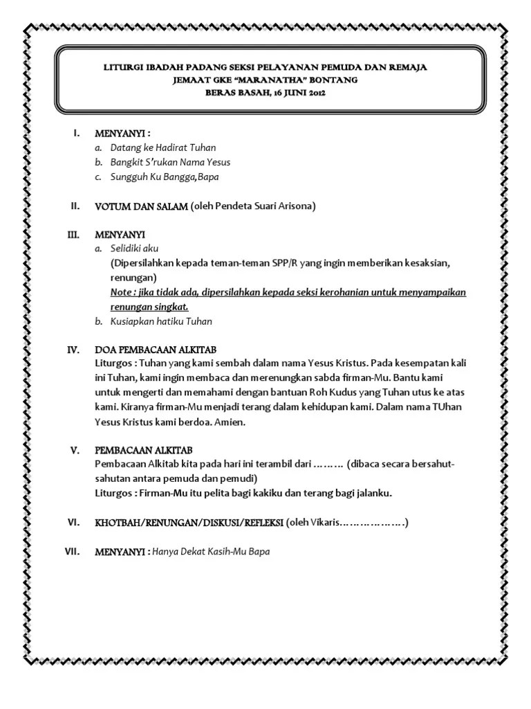Tata ibadah kreatif untuk pemuda. Tata ibadah natal/advent wikj4 gereja b & p hkbp marturia barisan prosesi sambilmenyanyikan "kumasukruangmahakudus" k. Barisan prosesi diiringi dengan nyanyian dari choir: · prolog dari pemuda ⷠ. Ibadah gkii tata ibadah natal gkii daerah alor liturgi natal kamis 12 desember .
